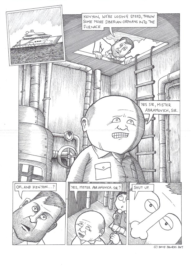 Something from a few years ago to start with. It’s a shame Peter Kenyon left Chelsea, as there was comedy potential in his subservient relationship with Roman Abramovich. You’ll note from this cartoon that I’m unfamilair with the internal mechanisms of yachts.